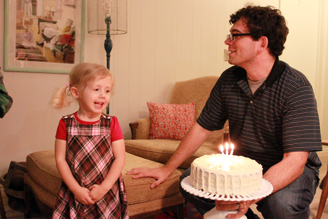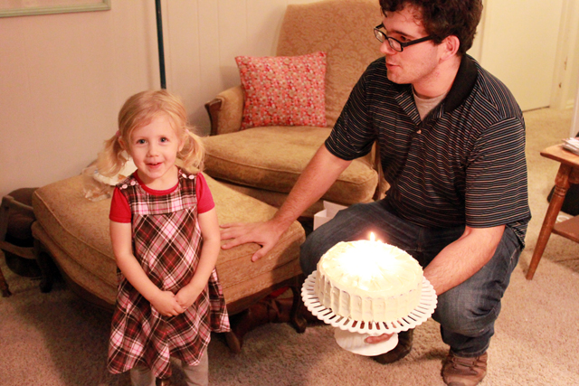Last Saturday we had a family birthday party for Violet. Almost all of her grandparents were able to attend, and Violet was over the moon with happiness! Her only request? A purple birthday cake…