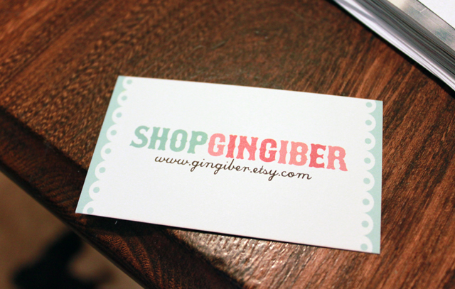 I remember over 2 years ago, when I was 1st dreaming up Gingiber, the scariest step for me was ordering business cards! Ordering my cards meant that I was a real business, and perhaps my hobby would soon turn into a tangible, profitable online shop.