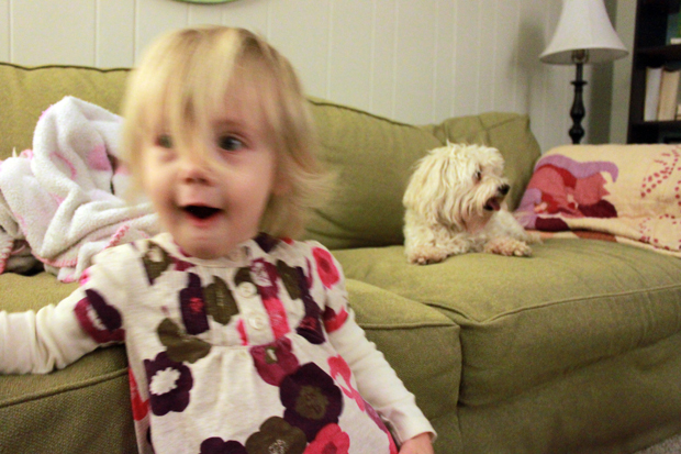 Even though this photo of her is blurry, I just love her pleasant little expression! Oh, and Wallace is in the photo too, so it is a great little picture!