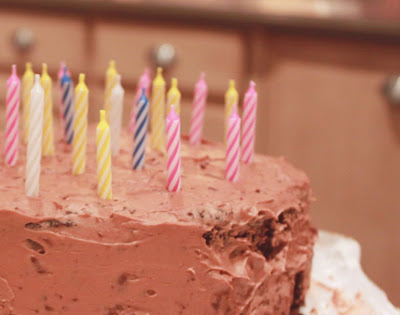 This is the only photo I snapped of the BEST chocolate cake that I have ever made. Nathan had his 26th birthday last weekend, so I decided to make him a homemade cake. I must have lucked out, because I found this recipe really fast on the food network website. I made the actual cake from this recipe, and used the chocolate frosting from this recipe.