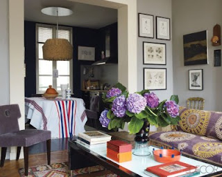 I love the low fireplace and the pops of plum
